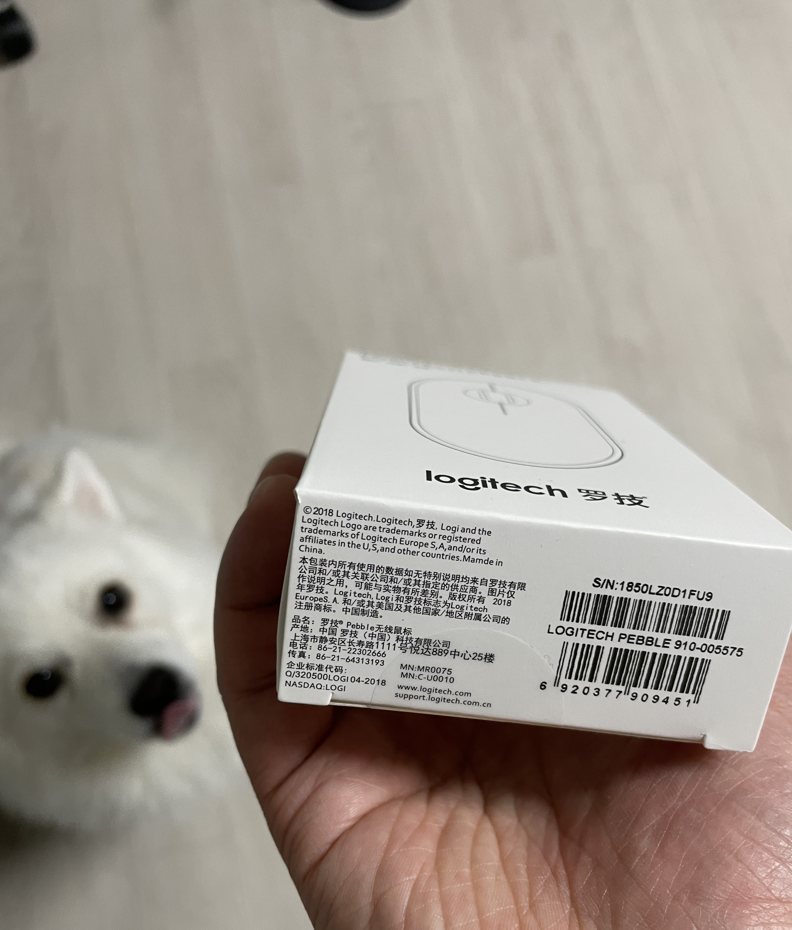 위 사진은 제가 구매해서 도착한 로지텍 페블 마우스의 제품 상자입니다. 반려견 하늘이 인증, 동일한 일련번호임을 확인했습니다.
